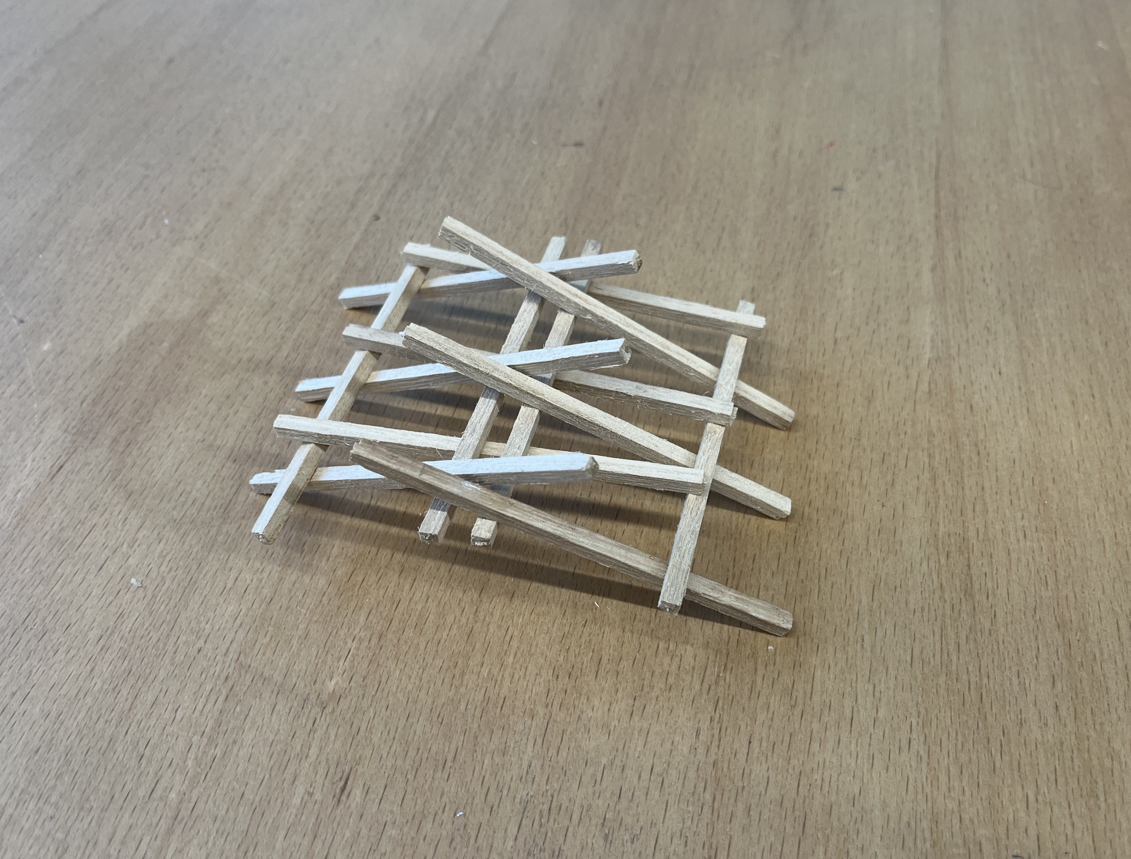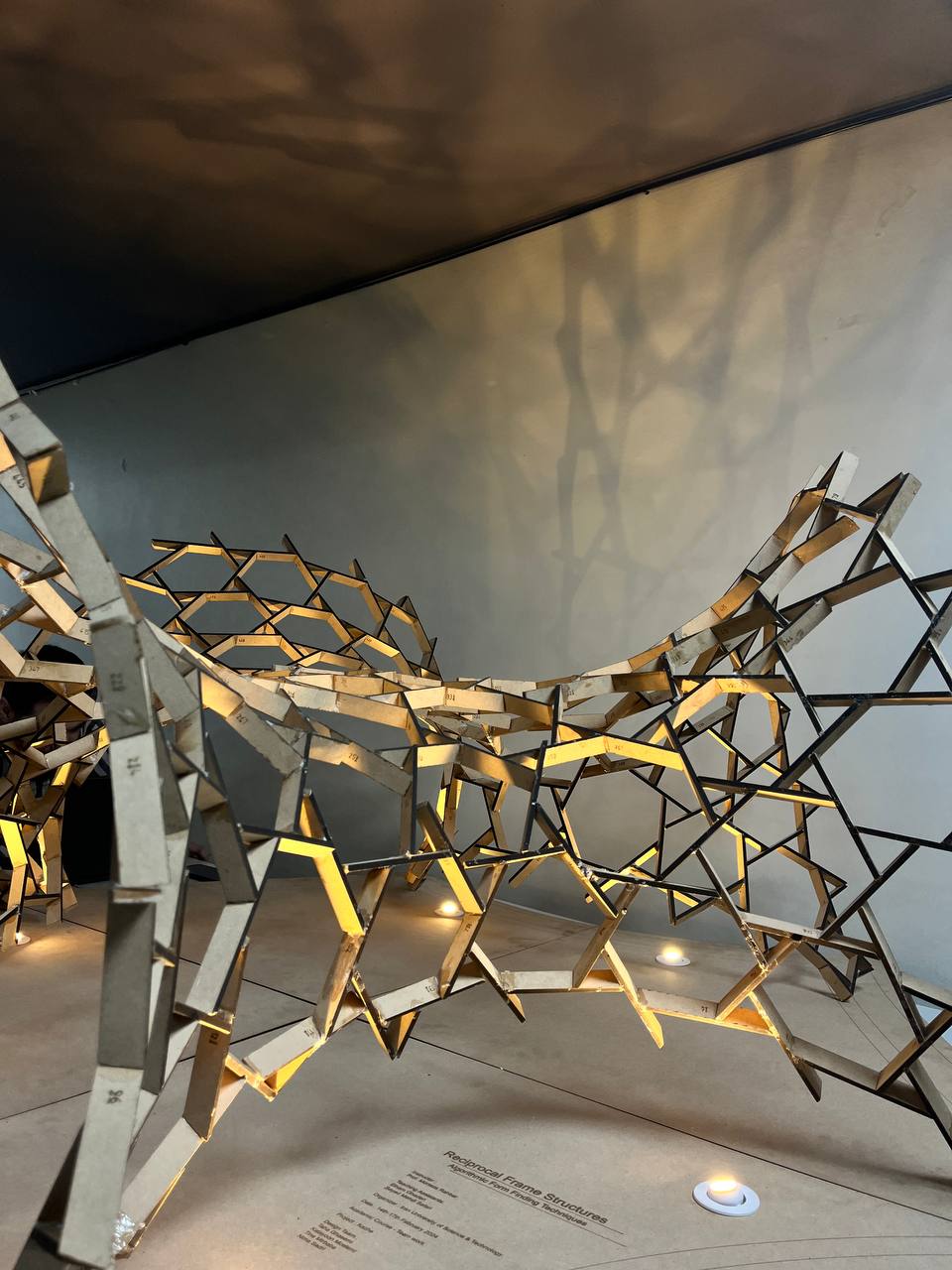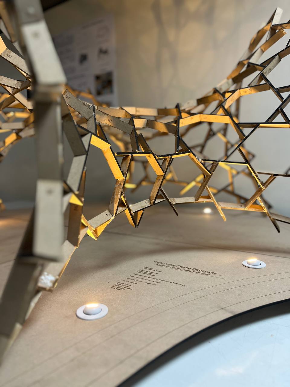 Different stages in the design of KAJE include research, form-finding, structural analysis, assembly, and fabrication.In the first stage of design, we experimented with the reciprocal structure functionality using test mock-ups such as the Da Vinci bridge and a small prototype that worked functionality the same. Next, we designed the model using Grasshopper and its plugins to analyze the structure behavior.