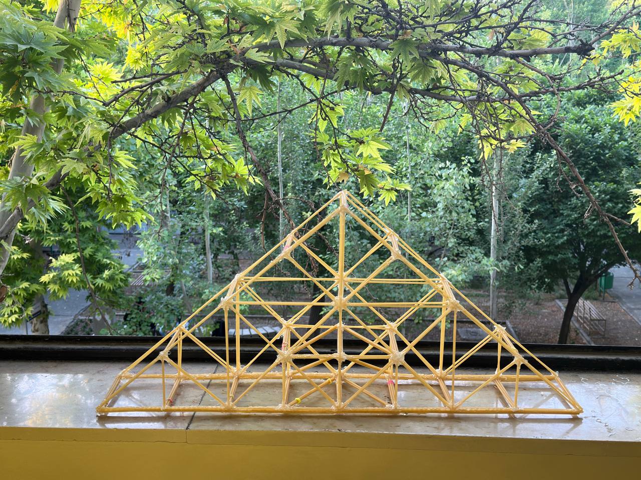 Phase Two: Design Process Before constructing the structure, we used the Karamba plugin and other available plugins in Grasshopper to analyze the structure in detail. These analyses helped us identify potential weaknesses and make necessary adjustments in the final design. Based on these analyses, we began constructing the macaroni structure with high precision and adherence to the designed technical specifications.