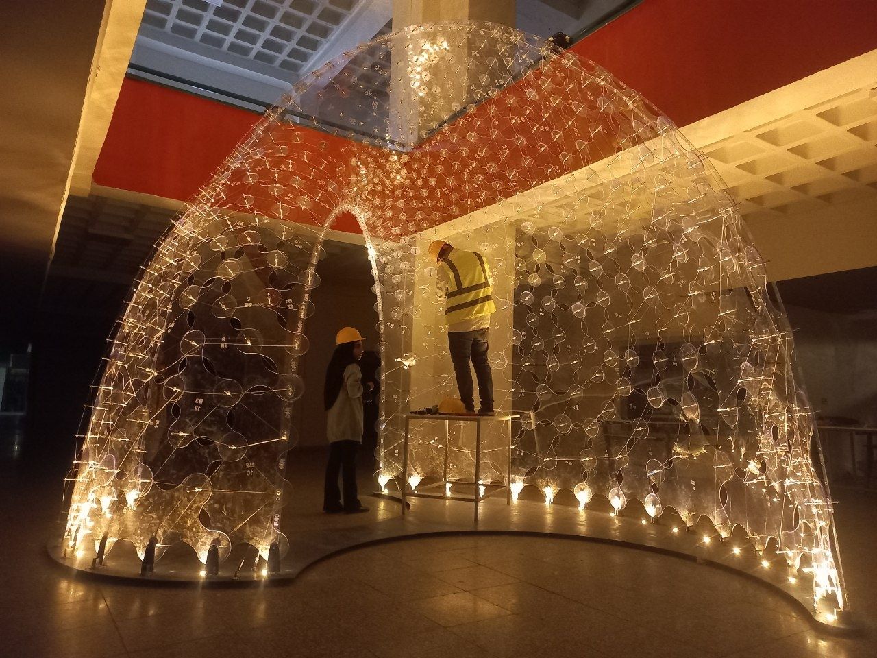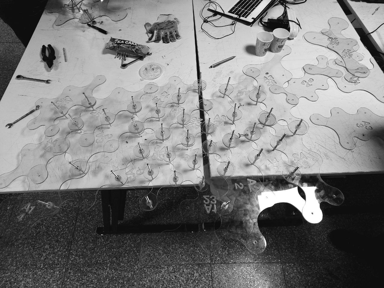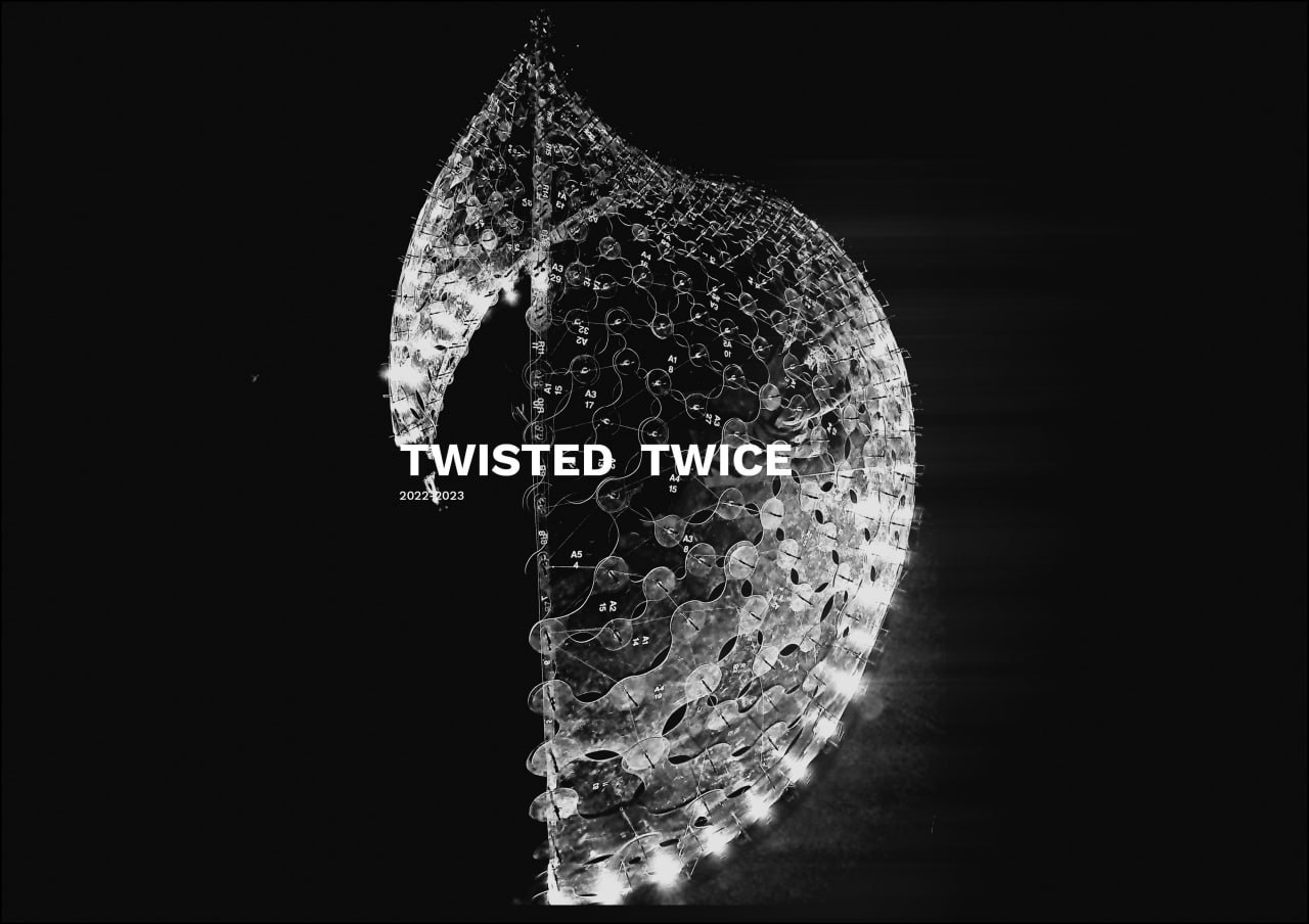 The Twisted Twice research project was carried out at Iran University of Science and Technology over a one-year period, from January 2022 to January 2023. The computational form-finding of bending active structures based on structural and material properties was the first step in this research. Several hybrid structural systems were tested and prototyped to find the best solutions in terms of material usage, cost, and CO2 emissions while meeting displacement and tension criteria. The final project was completed in January 2023.